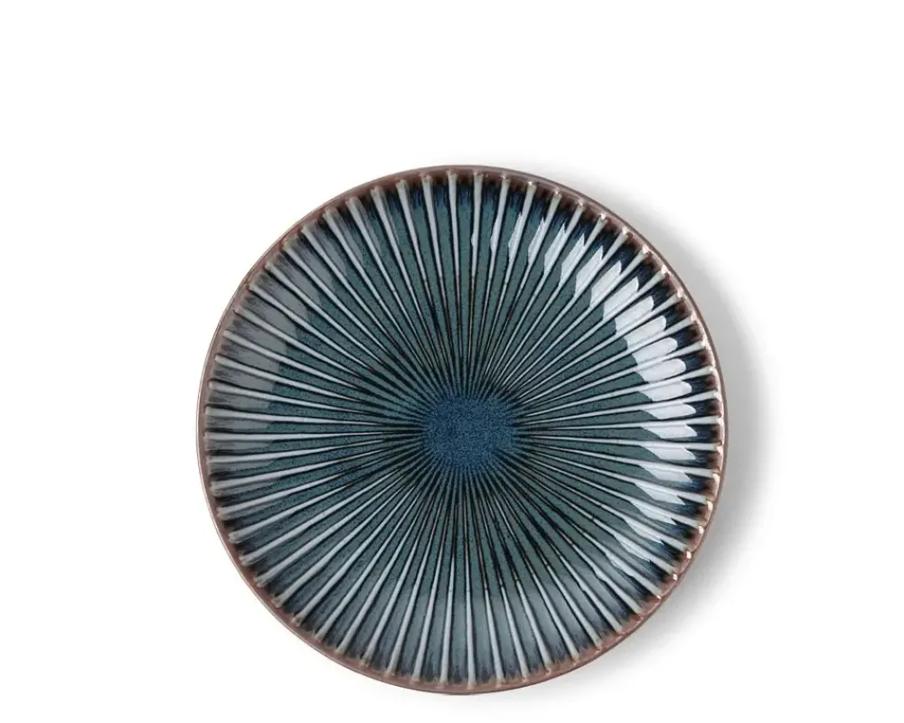 This Beautiful Navy Colored Series Looks As Luxurious As Silk. The Lines That Are Radiating From The Center Are Raised And Create A Dramatic Design That Will Elevate Any Tablescape.