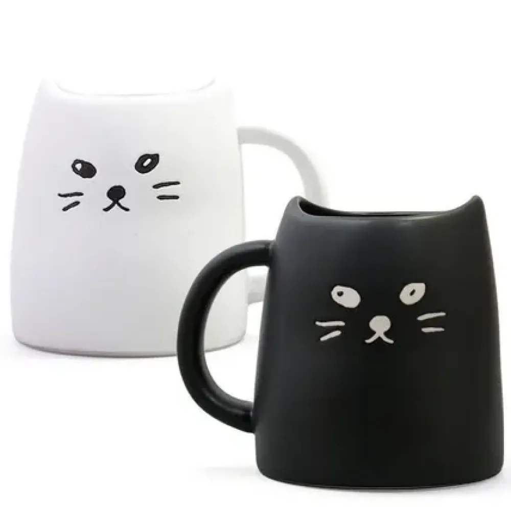 Two Cat Mug Set With Kitty Faces And Ears.Great Set For Your Favorite Cat Lover!Set Includes One Black And One Cat Mug Packaged In A Cute Cat Graphic Box.