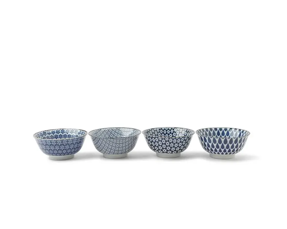 Blue And White Is The New Neutral. These Versatile 5.75″ Bowls Are Not Only Great For Soups, Cereal, Dessert, Snacks, Noodles, Salad, Etc. Assorted Patterns To Bring Beautiful Variety To Your Life. This Japanese Bowl Set Includes Four Bowls Packaged In A Black Gift Box.