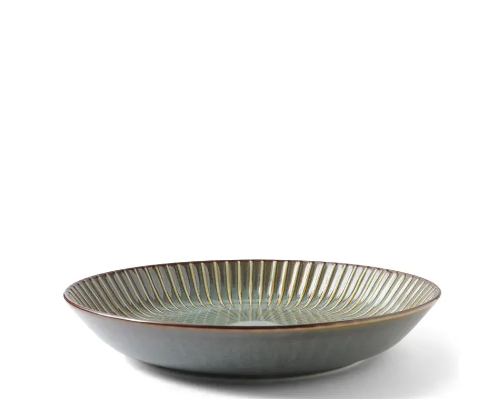 This Beautiful Soft Green Colored Series Looks As Luxurious As Silk. This Is A Deep Plate That Holds All The Sauces And Grains That You Love. &Nbsp;The Lines On The Plate Are Raised And Create A Dramatic Design That Will Elevate Any Tablescape.