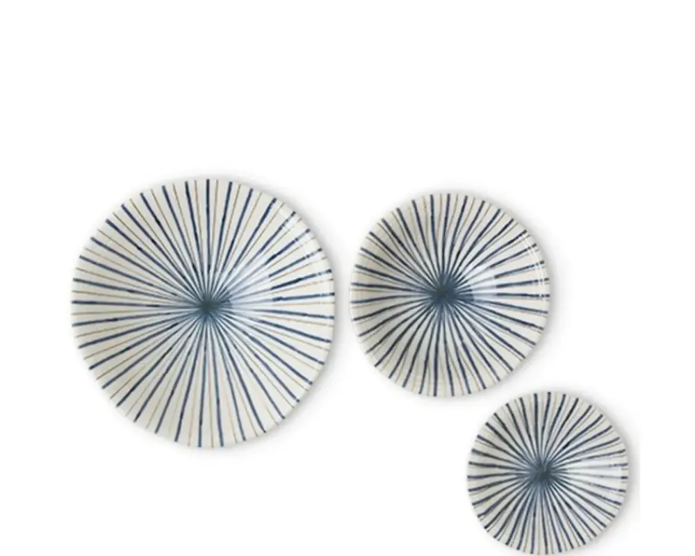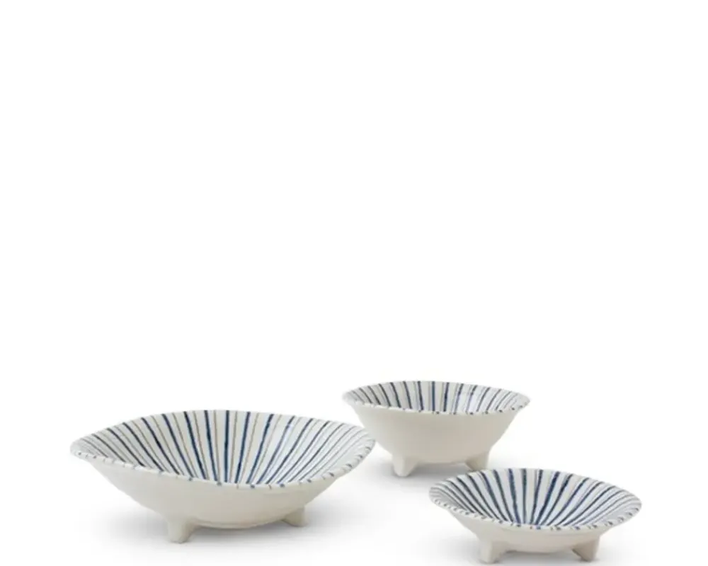 Blue And Brown Tokusa Lines Make This Cute Series Of 3 Bowls Elegant And Whimsical At The Same Time.