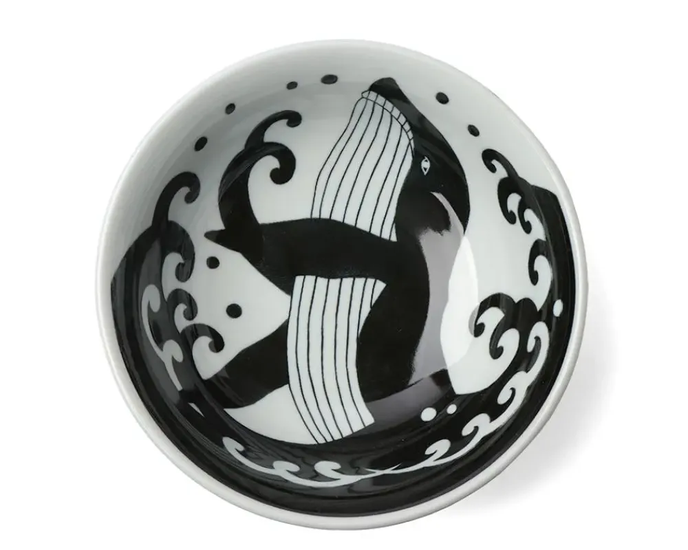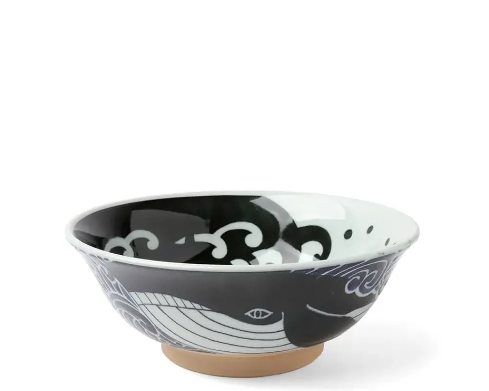 Ramen Bowl With Blue Whale Wave Design.