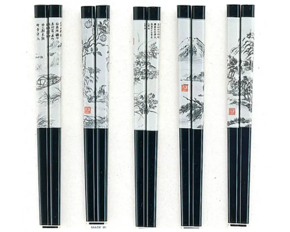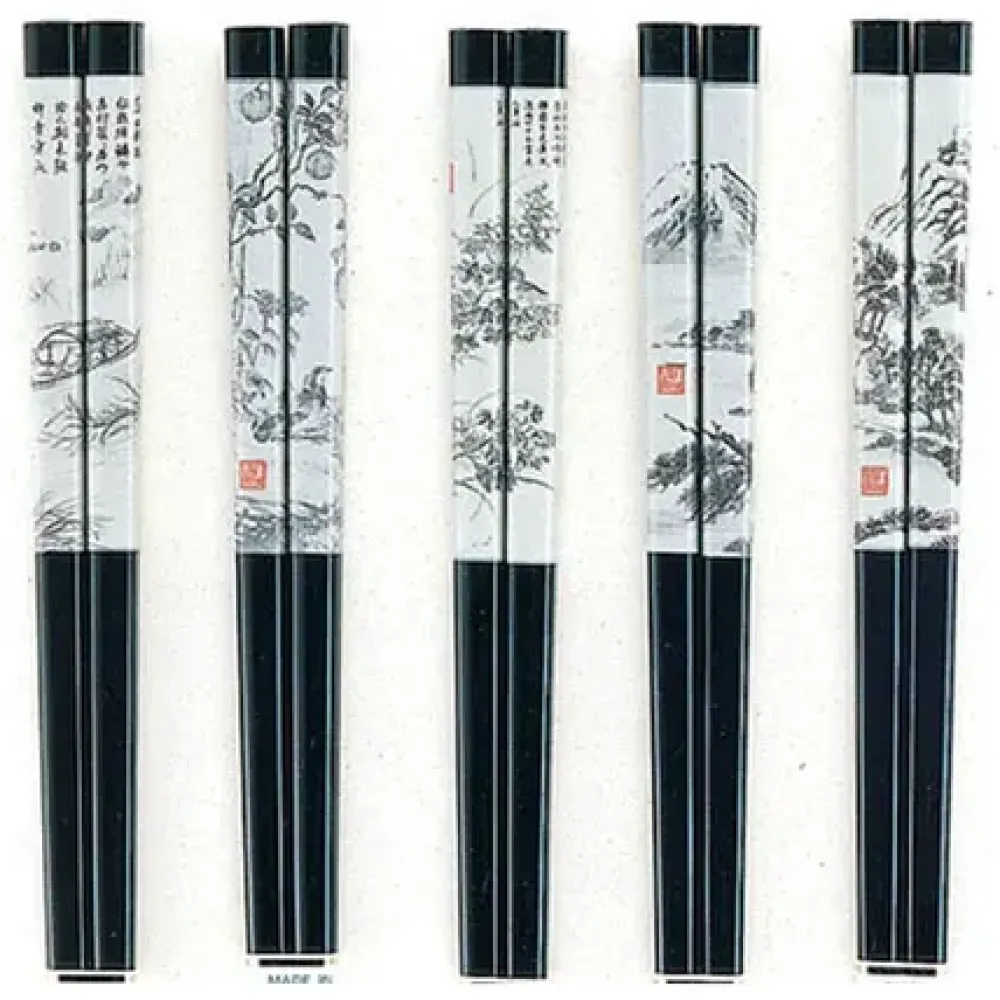 Beautiful Black &Amp; White Scroll Art Adorn These Black Lacquered Chopsticks.*Price Is Per Chopstick.Specific Designs From The Assortment Cannot Be Ordered.