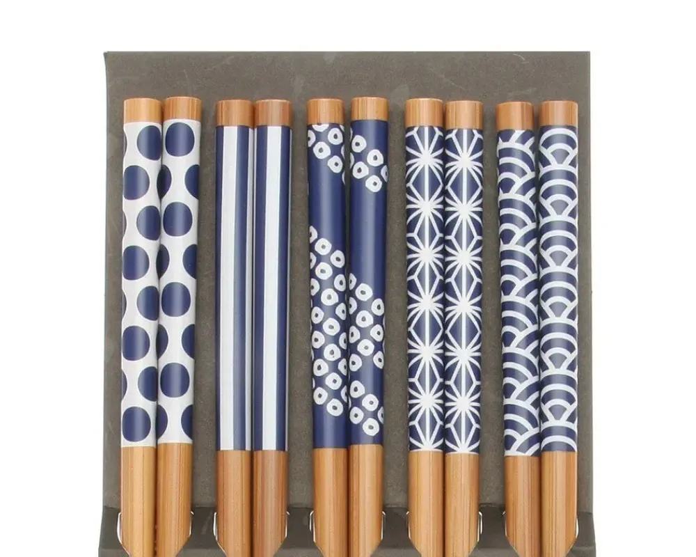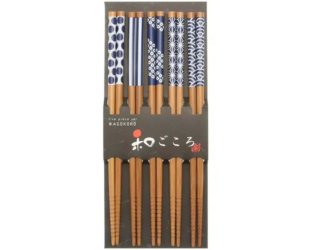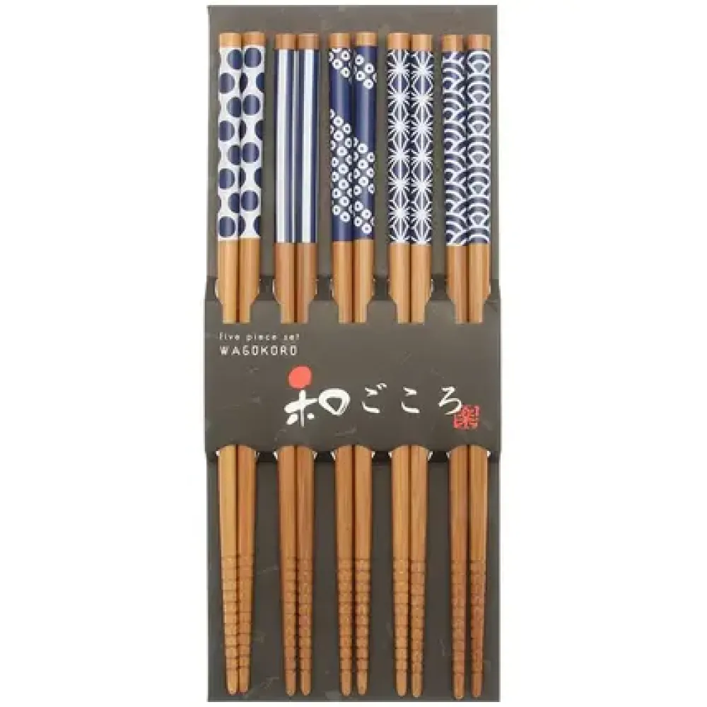 Bamboo Chopsticks Set With Assorted “Waka” Blue/White Patterns. Wagokoro&Nbsp;