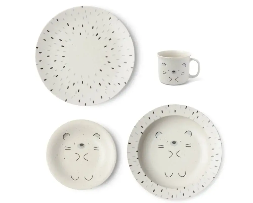 - 4 Pc. Coordinating Set: Mug, Small Plate, Medium Plate, And Large Plate .