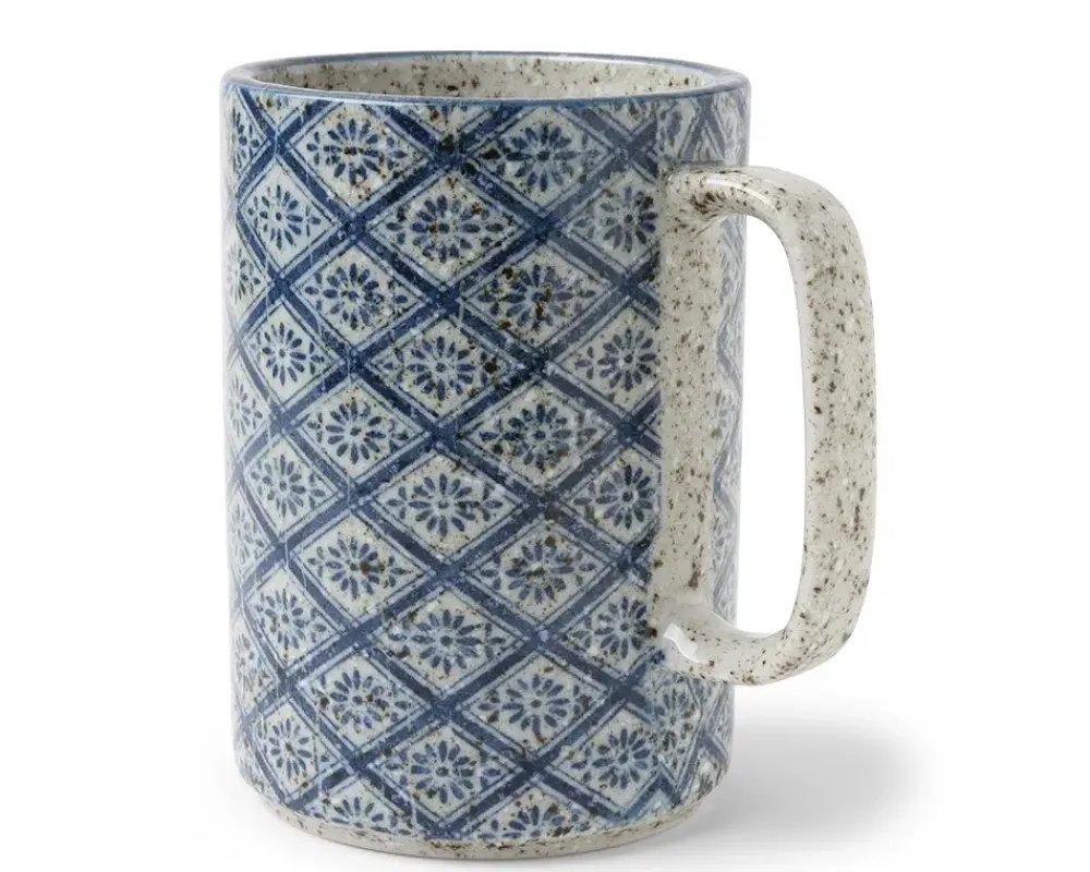 Blue &Amp; White Pattern On A Large 16 Oz. Mug.That’S A Lot Of Tea….