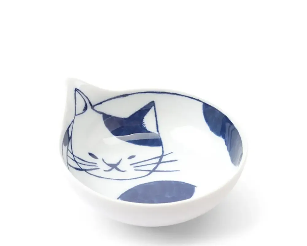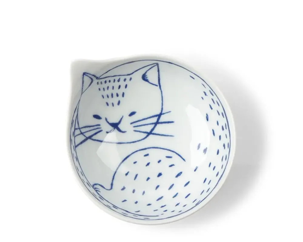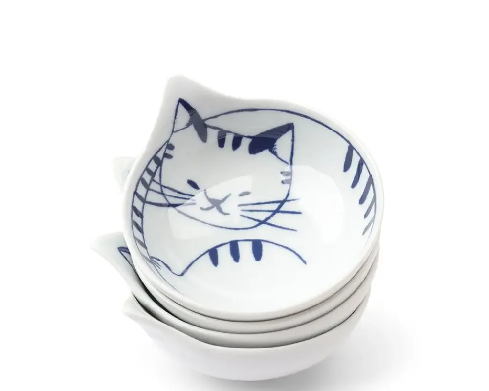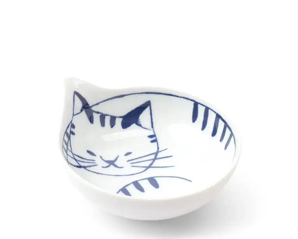 Blue &Amp; White Cat Plates From Arita