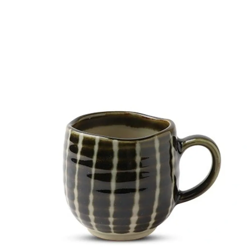 Deep Oribe Green With Contrasting Vertical Stripes Add To The Elegance And Artistry Of This Beautiful Mug.Perfect For Coffee, Tea, Whatever Makes You Happy.