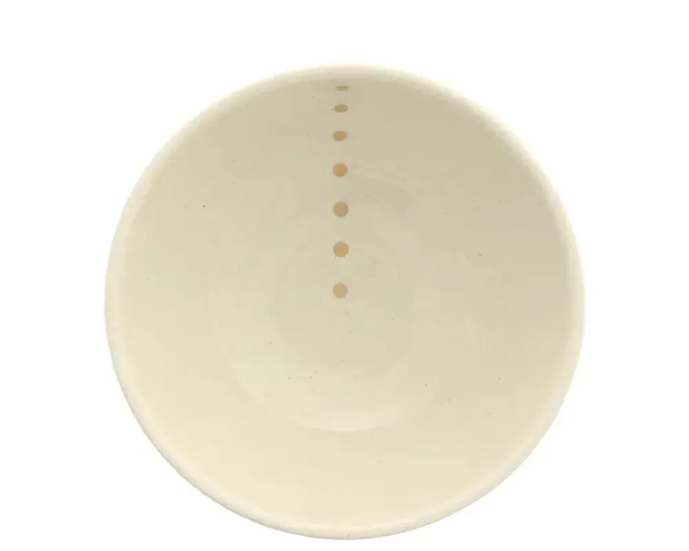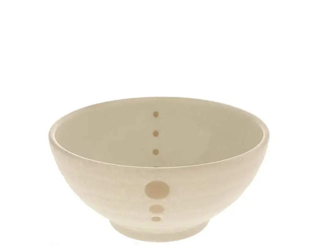 White Glazed Bowls With Beige Circle Design.