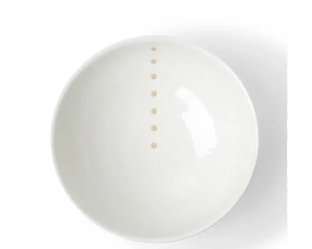 Cream Glazed Bowls With Beige Circle Design.