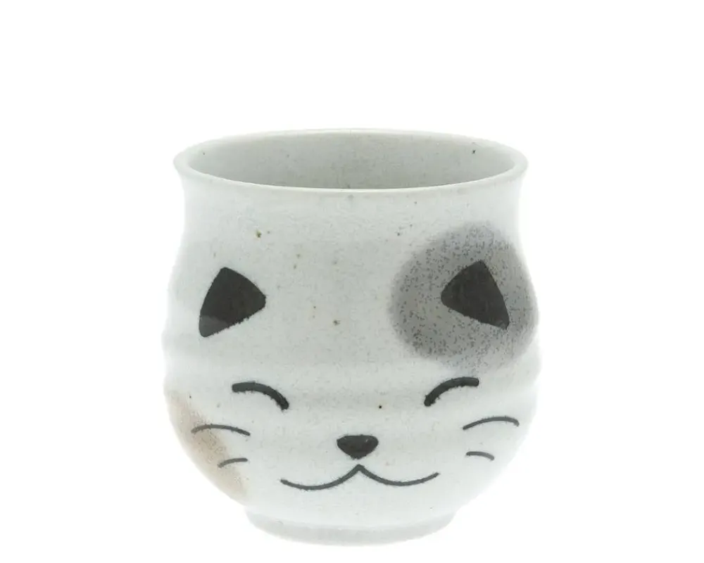 Teacup Also Known As Sushi Cup In White Calico Cat Design.