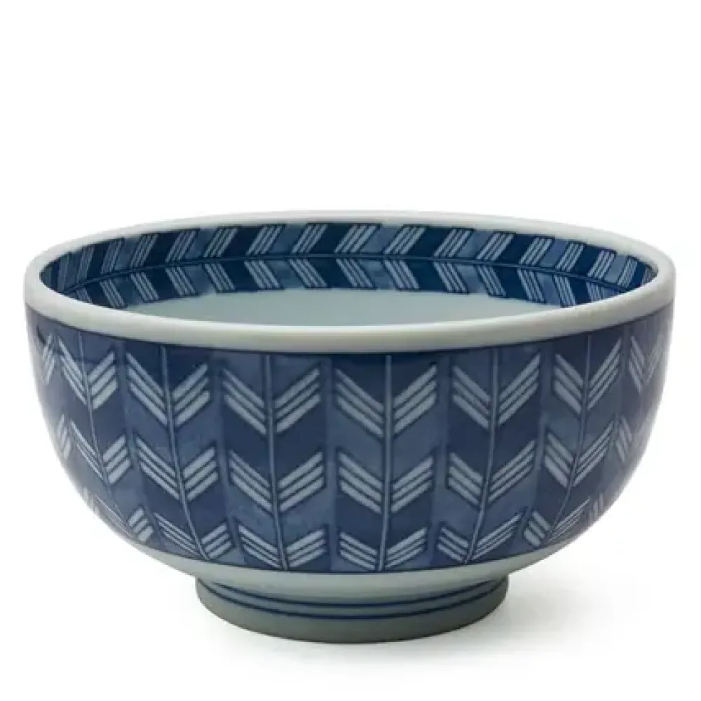 Blue And White Bowl Featuring A Yabane Or “Arrow Feather” Pattern.
